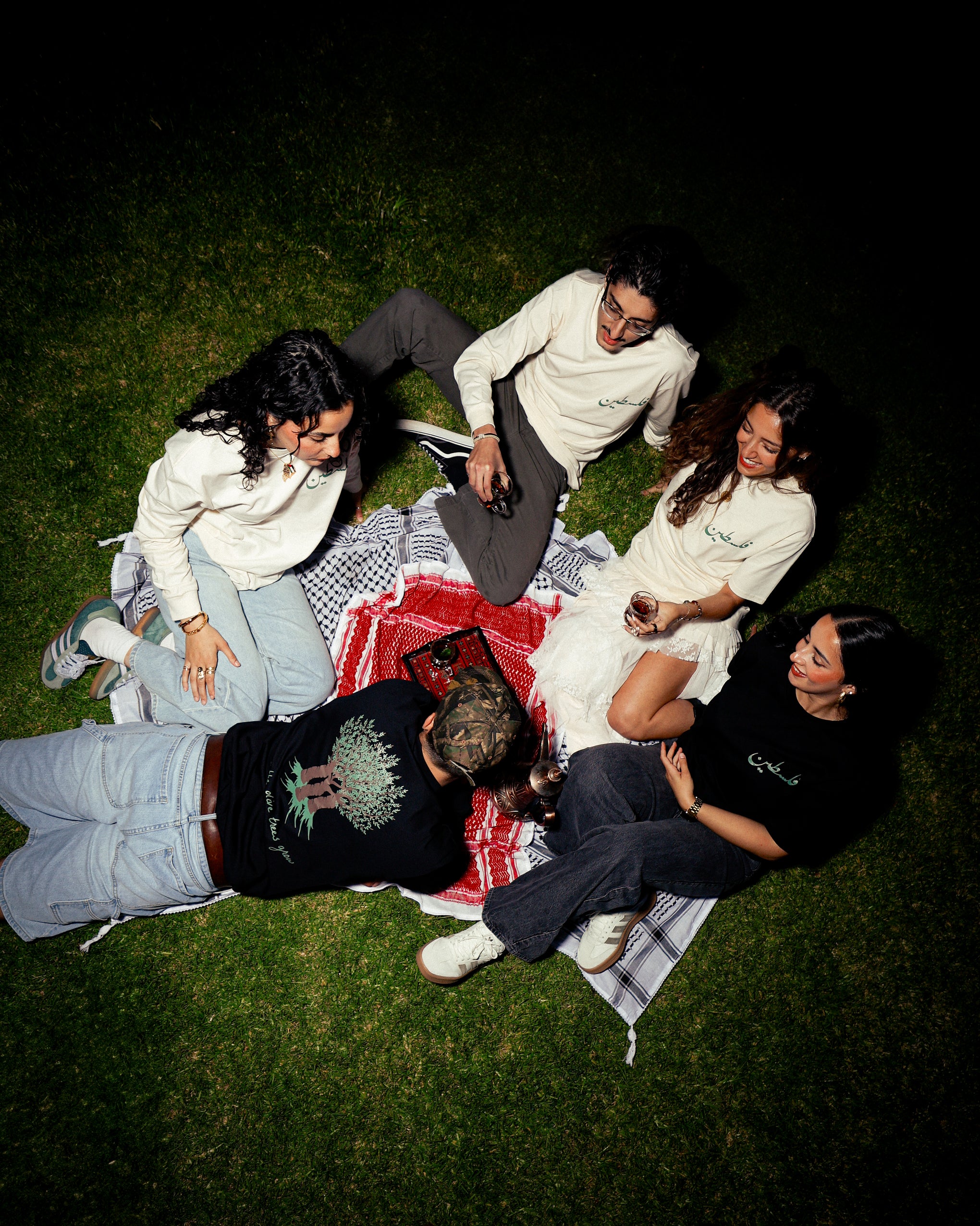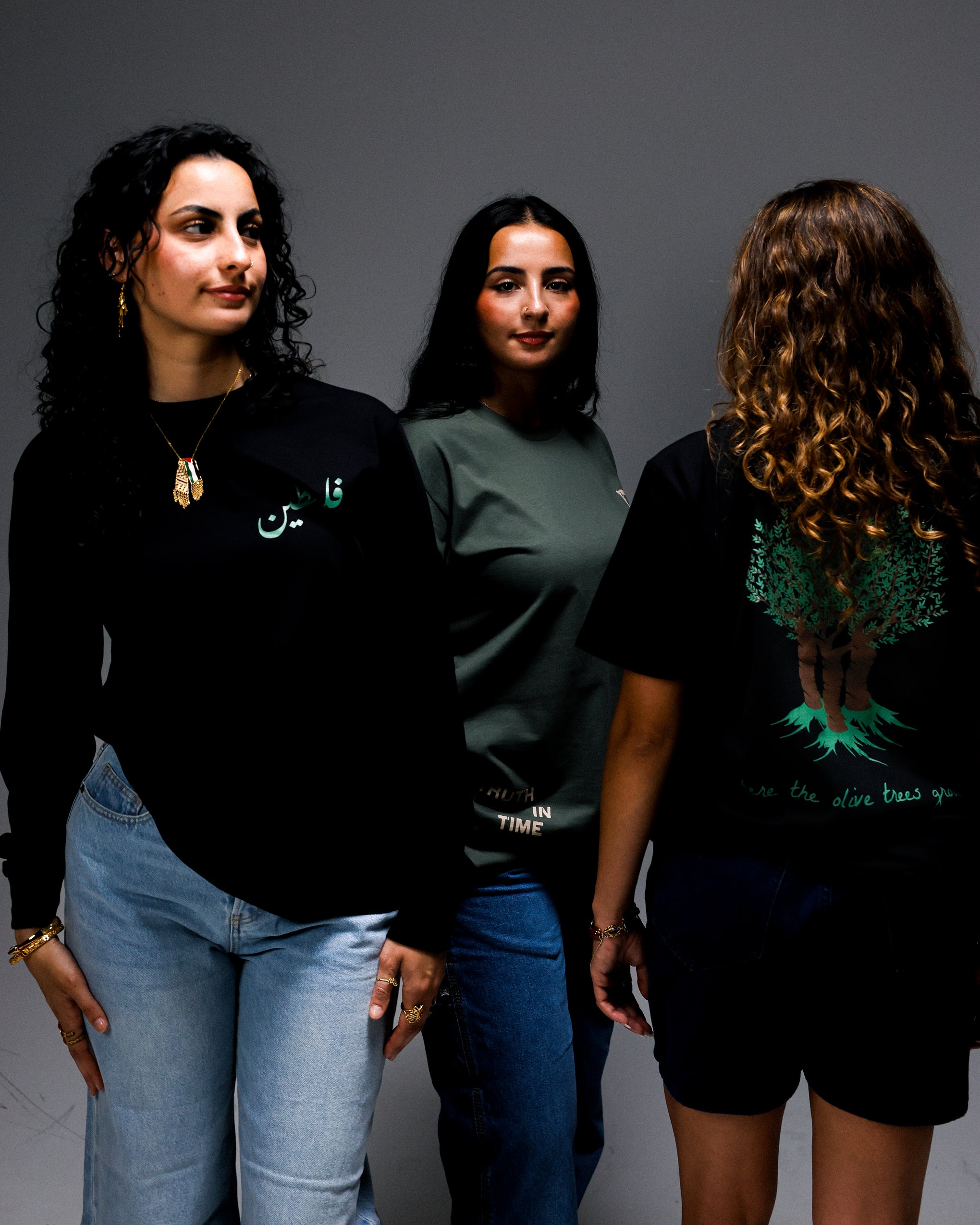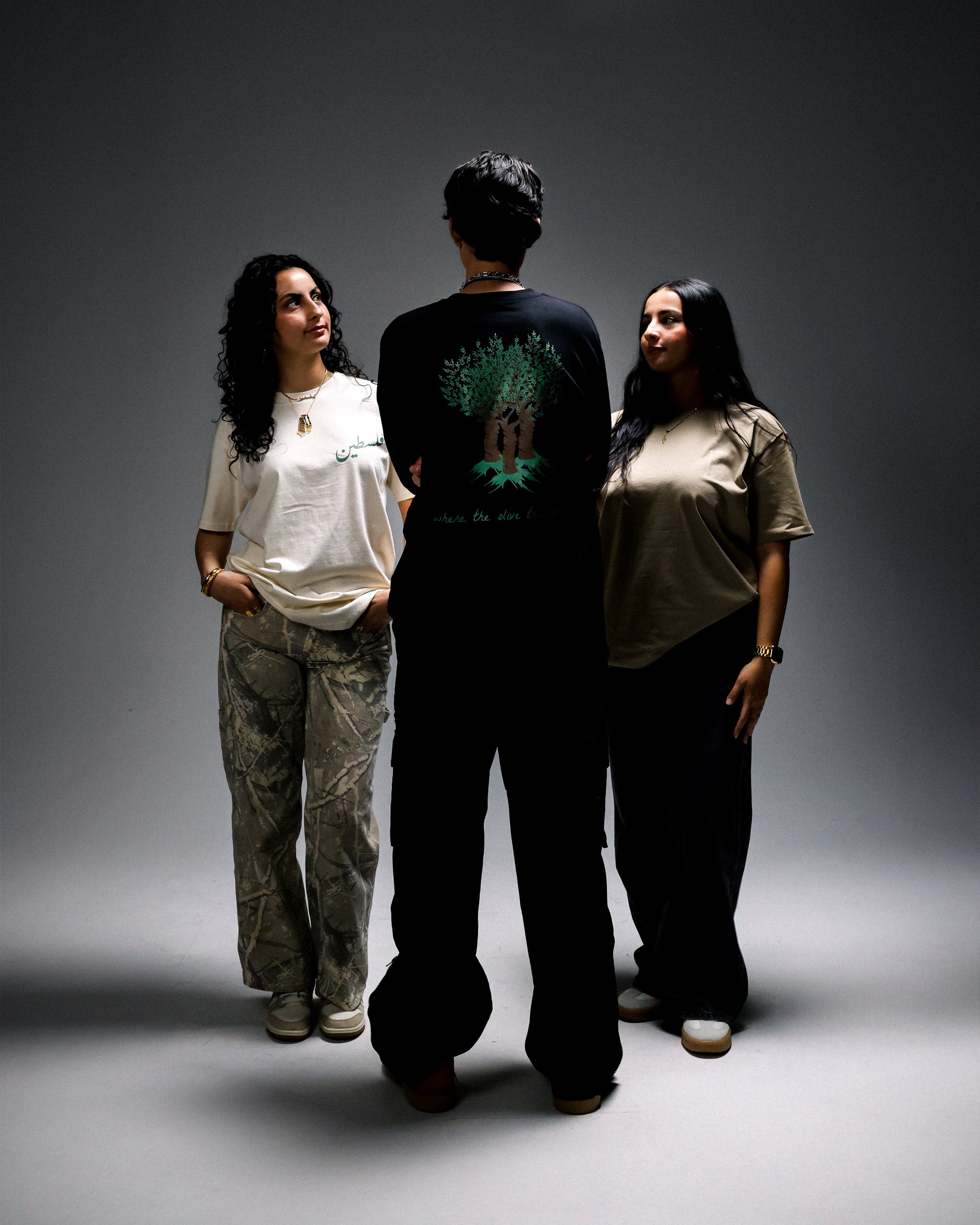 A nod to Palestinian identity and resilience, it blends culture with style. The olive tree, symbolizing strength, peace, and deep-rooted heritage, adds a meaningful touch, making the piece not just fashion, but a tribute to heritage and resistance. The design brings together bold graphics and powerful messaging, perfect for those who wear their beliefs on their sleeve.